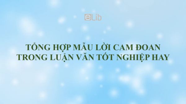Lời cam đoan trong luận văn tốt nghiệp là một văn bản nhằm khẳng định rằng luận văn của bạn là khác biệt, là công trình nghiên cứu của chính bản thân và không sao chép từ bất kỳ nguồn nào. Để có được lời cam đoan hay và đầy ý nghĩa, mời các bạn cùng tham khảo bài viết Tổng hợp mẫu lời cam đoan trong luận văn tốt nghiệp mà eLib đã tổng hợp dưới đây.
