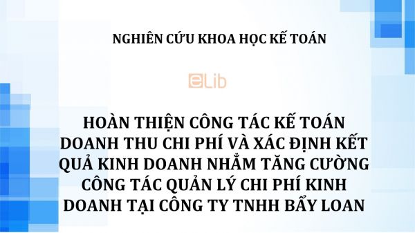 NCKH: Hoàn thiện công tác kế toán doanh thu chi phí và xác định kết quả kinh doanh nhẳm tăng cường công tác quản lý chi phí kinh doanh tại công ty Tnhh Bẩy Loan